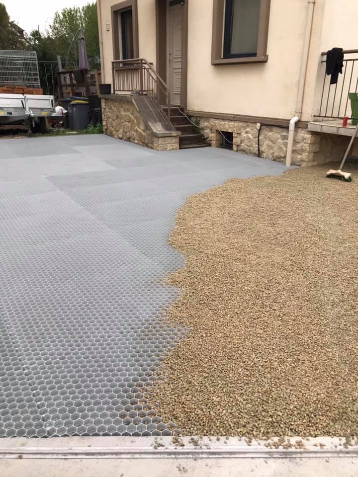 Nous posons des dalles alvéolaires pour créer des surfaces stables, perméables et durables. Idéales pour les parkings, allées, cours ou zones de passage, elles permettent une bonne infiltration de l’eau tout en assurant une résistance optimale au roulage. Grâce à leur conception en matériaux solides et écologiques, les dalles alvéolaires offrent une solution esthétique et fonctionnelle pour vos aménagements extérieurs.